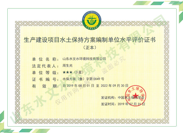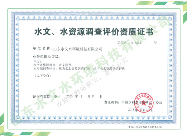 公司擁有水利工程設(shè)計(jì)、水土保持、水文水資源調(diào)查評(píng)價(jià)、水資源論證、建設(shè)項(xiàng)目環(huán)境影響評(píng)價(jià)、市政公用工程施工總承包、水利水電工程施工總承包、電子與智能化工程專業(yè)承包等資質(zhì),2017年通過質(zhì)量管理體系、環(huán)境管理體系、職業(yè)健康安全管理體系認(rèn)證;2020年被評(píng)為國(guó)家級(jí)高新技術(shù)企業(yè),同年被中國(guó)水利企業(yè)協(xié)會(huì)推薦為第一批“合同節(jié)水服務(wù)企業(yè)”;2021年被山東省、濟(jì)南市評(píng)為 “專精特新”中小企業(yè)。業(yè)務(wù)范圍涉及水利工程設(shè)計(jì);節(jié)水設(shè)計(jì)、改造、水平衡測(cè)試;山洪災(zāi)害調(diào)查;城市水資源調(diào)查評(píng)價(jià);建設(shè)項(xiàng)目水土保持方案編制、監(jiān)測(cè)、驗(yàn)收、水土保持規(guī)劃;水安全保障規(guī)劃、建設(shè)項(xiàng)目水資源論證、規(guī)劃水資源論證;建設(shè)項(xiàng)目環(huán)境影響評(píng)價(jià);入河排污口論證;防洪影響評(píng)價(jià);市政公用工程施工、水利水電工程施工、電子與智能化工程施工等。